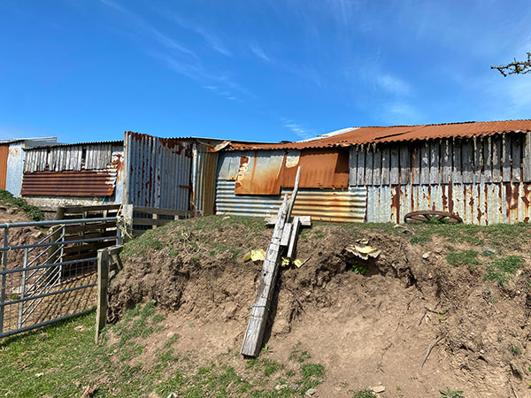A rubbish truck pulls up,