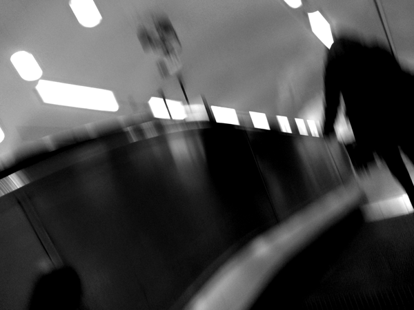 We slip beneath the belly of the Saint as suited men
