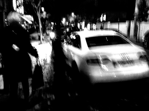 silent Rhythm in His head. His skinny jeans, Black leather roots