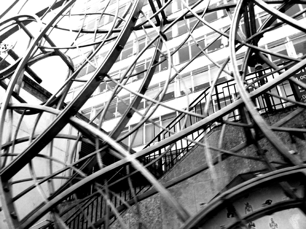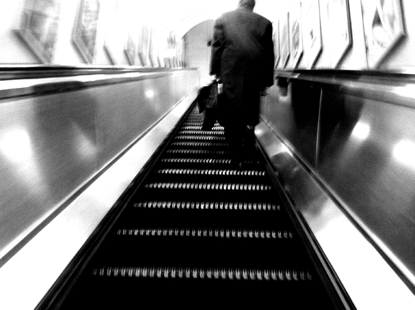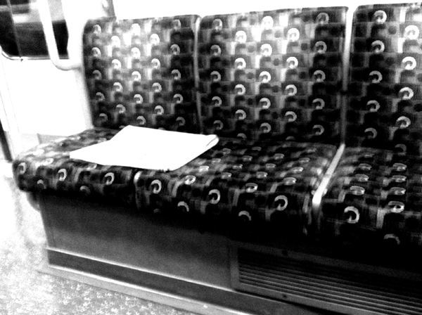 Rail in an Underground train, His skinny legs jiggling to a