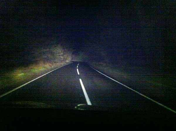 Drive into the light, radio on, hedge rows straining to