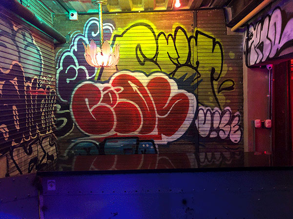 Shuffles up the alley,